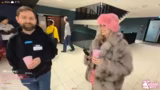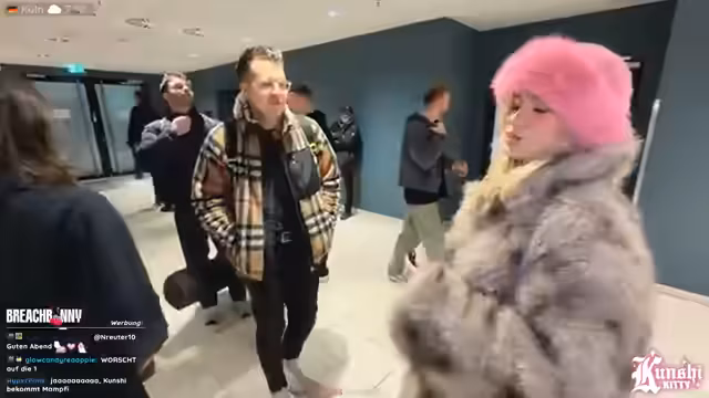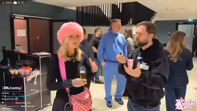 00:29:06Die Streamerin beginnt damit, sich im Umfeld der anderen Gäste und des Personals zu bewegen, fühlt sich dabei aber sehr unwohl und beschreibt sich als 'sozial awkward'. Sie versucht, Gespräche zu führen, fühlt sich jedoch wie eine Außenseiterin auf einer Familienfeier. Bei einem ersten Versuch, eine Gruppe junger Fans anzusprechen, gerät sie ins Stocken und bricht das Gespräch ab, was ihre soziale Verunsicherung unterstreicht.