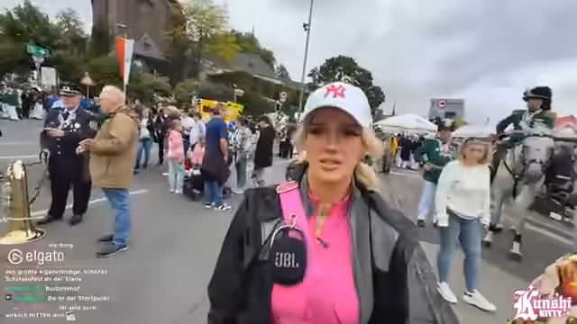 06:14:44Vor dem Besuch der Parade führen die Streamerin und ihr Begleiter Max eine spontane Sport-Challenge durch, bei der sie gemeinsam Hampelmänner machen. Anschließend macht sie sich auf den Weg zum Umzug des Neusser Schützenfestes. Da der Zeltplatz bereits sehr stark frequentiert ist, entscheiden sie sich dafür, den Umzug an der Hauptstraße zu beobachten, um so direkt am Anfang der Parade zu sein und nicht auf das Ende warten zu müssen.