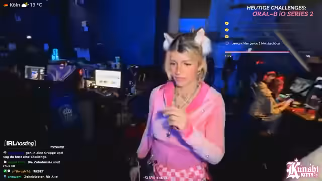 02:37:33Für neu hinzukommende Zuschauer wird der Kontext der Veranstaltung erklärt: Es wird eine Partnerschaft zwischen dem Kanal 'kunshikitty' und Oral-B für die Gamescom-LAN. Gemeinsames Ziel ist das Meistern von vier verschiedenen Challenges, von denen bereits zwei erfolgreich abgeschlossen wurden. Für jede abgeschlossene Challenge gibt es ein Giveaway für die Zuschauer, bei dem eine neue Oral-B IO2 gewonnen werden kann. Der verbleibende Zeitrahmen und die verbleibenden Herausforderungen werden skizziert.