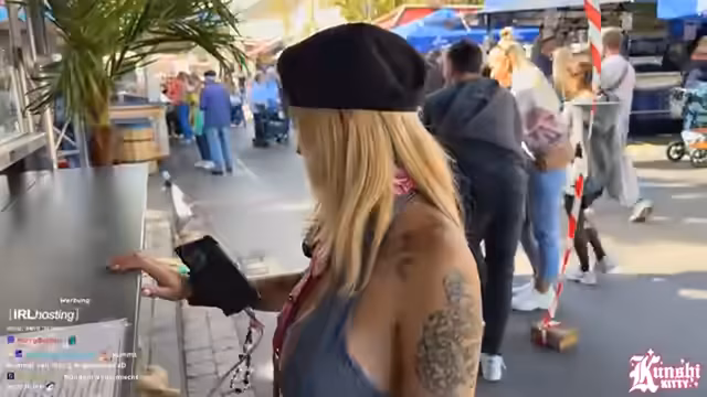 01:18:38Die Streamerin bewegt sich durch die Essensstände der Kirmes und riecht eine Vielzahl von Gerüchen, von Crepes über Bratwurst bis hin zu Fisch. Sie erwähnt spezielle vegane Optionen wie vegane Currywurst und Bratwurst, die sie sehr lobt. Sie probiert vegane Reibekuchen und diskutiert über alternative Milchsorten wie Hafer- oder Erbsenmilch, bevor sie sich einem veganen Döner-Stand zuwendet und das Fehlen solcher Stände auf Kirmesfesten thematisiert.