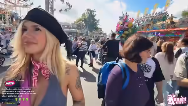01:37:07Kritik an der Kirmes wird geäußert, dass es zu wenig Fahrgeschäfte und zu viel Schrott gibt. Es wird festgestellt, dass noch Flüssigkeit im Eisbecher ist. Der Follower Only Chat wird erwähnt. Es wird überlegt, welche Fahrgeschäfte gefahren werden sollen. Die 5-Euro-Rose soll an die Mütze gemacht werden. Es wird festgestellt, dass es South Park-Fühlchen und Naruto gibt. Ein Kabel wird übersehen und man stolpert. Es wird sich bedankt für die Subs. Es fällt auf, dass es sehr viele Automaten auf der Kirmes gibt. Die Betreiber werden beglückwünscht, dass das Wetter mitspielt.
