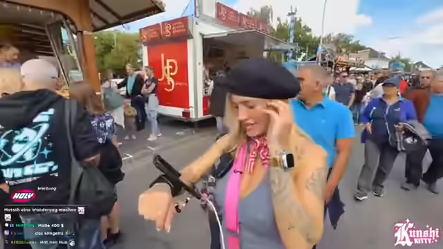 01:05:24Es wird festgestellt, dass die Reibekuchen vegan sind, und eine Portion mit Apfelmus wird bestellt. Ein Gespräch mit einem Kameramann wird geführt, der den Livestream auf Twitch filmt. Der vegane Stand wird als 10 von 10 bewertet. Es wird erklärt, dass Reibekuchen oft Eier und Milch enthalten, aber es auch ohne geht. Es wird über verschiedene Milchalternativen gesprochen, wobei Erbsenmilch als die schlimmste empfunden wird. Die Bayern-Festhalle wird entdeckt und die Vorfreude auf das Oktoberfest steigt. Muskelkater wird überall im Körper festgestellt. Ein Grillstand mit Ferkeln als Deko wird als nicht konsequent empfunden. Es wird sich gefragt, warum es noch keine Dönerbude auf einer Kirmes gibt.