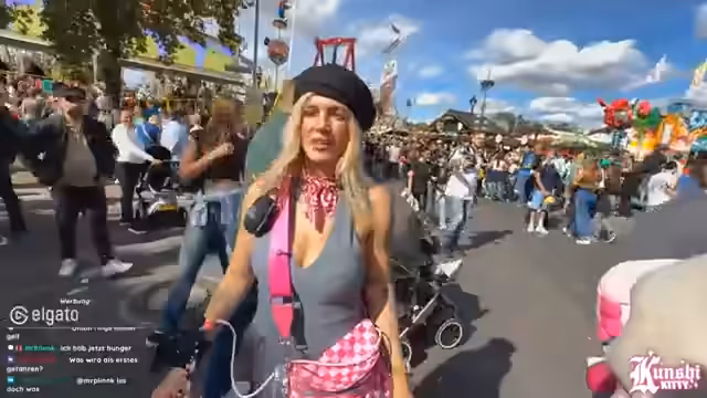 00:16:39Die Streamerin beschreibt ihre Eindrücke vom Pützchen Markt, einem Kirmesereignis. Sie überrascht sich über die große Anzahl von Besuchern, vergleicht es mit dem Vorjahr und vermutet, dass das unerwartet sonnige Wetter für den Andrang verantwortlich ist. Sie geht auf den Umgang mit der unvorhergesehenen Hitze ein, da sie sich für bewölktes Wetter angezogen hatte und bemerkt, dass die Kirmes im Vergleich zu anderen mehr Marktstände als typische Fahrgeschäfte aufweist.