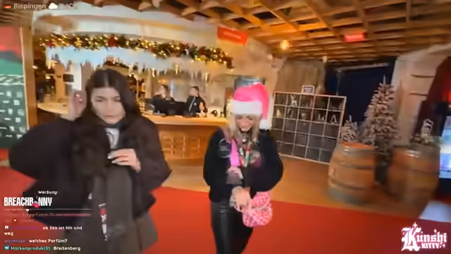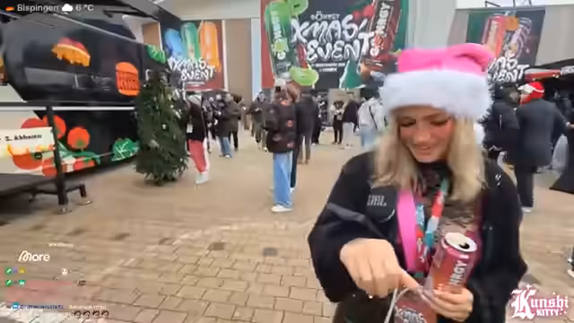 08:04:55Die Streamerin und ihr Begleiter begeben sich auf den Weihnachtsmarkt, wobei die Auswahl von Snacks wie Mandeln und Churros thematisiert wird. Es kommt zu einem unglücklichen Vorfall, bei dem heiße Getränke verschüttet werden. Während des weiteren Rundgangs werden verschiedene alkoholische und nicht-alkoholische Getränke wie Kinderpunsch und Glühwein probiert und diskutiert, wobei auch die Verlässlichkeit des Internets auf dem Gelände bemängelt wird.