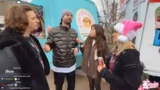 05:28:40Die Streamer treffen auf eine sehr große Person (ca. 2,25 m) und führen ein ausführliches Interview. Dabei wird das alltägliche Leben der Person beleuchtet, wie die Herausforderungen bei der Kleider- und Autowahl, der Umgang mit häufig gestellten Fragen ('Spielst du Basketball?') und die Auswirkungen der Größe auf das soziale Leben. Die Streamerin gibt dabei offen an, sich durch die Begegnung 'zierlich und petit' zu fühlen.