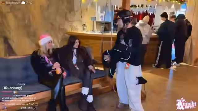 04:11:55Bei der Ankunft am Eventort stellt die Streamerin fest, dass sie die meisten Anwesenden nicht persönlich kennt, was sie verblüfft. Sie beschreibt das Zusammentreffen als besonders cool, da diesmal alle eingeladen sind und es ein sehr entspanntes und positives Miteinander gibt. Das Outfit der Streamerin wird gelobt und sie freut sich auf das gemeinsame Erlebnis. Die Location selbst bietet vielfältige Möglichkeiten, darunter Snowboard- und Ski-Verleih sowie professionelle Trainer, die auch Anfängern den Einstieg ermöglichen. Auch kulinarische Optionen wie diverse Fingerfood-Snacks, Nuggets und Cocktails sind vorhanden.