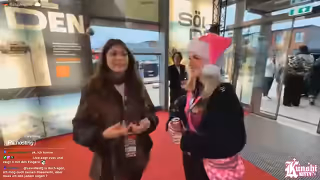 07:22:24Die Unterhaltung wechselt zur Vorfreude auf ein kommendes Spiel, das mit großer Aufregung angekündigt wird. Es folgen humoristische Szenen, in denen die Streamerin und ihr Begleiter Jimmy Blue sich vorzustellen versuchen, um mit anderen Streamern wie Krokosohn oder Zander zu sprechen, und dabei den Eindruck erwecken, diese abzufangen oder zu 'überfallen'. Der Stream und das Event werden als wildes Treiben beschrieben.
