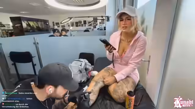 01:12:38Ein Versuch, ein Foto für eine Instagram-Story hochzuladen, gestaltet sich langwierig und frustrierend. Gleichzeitig zeigt der Stream den aktuellen Stand des Tätowiers: Die Schattierung des Vogels am Unterschenkel ist im Gange. Der Tattoo-Künstler wird als ruhig und konzentriert beschrieben, was für seine Art typisch sei. Die Streamerin äußert die Hoffnung, dass alle bisherigen Tattoo-Künstler ihrer Leidenschaft für Kunst folgen und nicht nur das ausführen, was der Kunde verlangt.