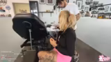 01:39:00Die Streamerin kommt pünktlich im Tattoo-Studio an und präsentiert das fertige Motiv für den heutigen Tag, einen Nymphensittich. Der Tätowierer hat die Zeichnung angepasst, da die ursprüngliche Form nicht perfekt passte. Das Studio wird als groß und modern beschrieben, mit mehreren Tätowierplätzen und Warteräumen. Die Streamerin zeigt sich begeistert vom Design und isst ihr Sandwich, während sie auf den Beginn der Tätowierung wartet und mit den Zuschauern über diverse Themen spricht.