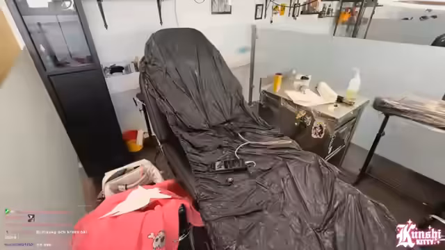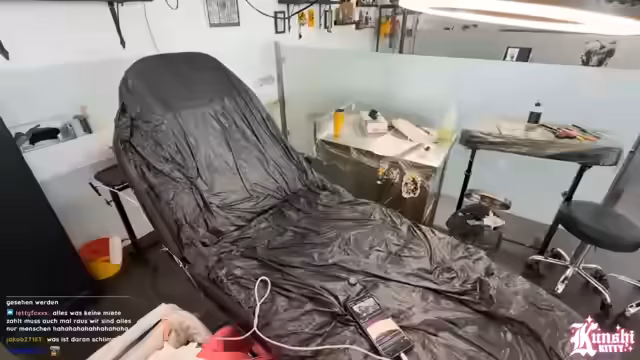 09:15:09Der Stream wird von technischen Problemen begleitet. Das Kabel zur Kamera ist zu kurz, was das Liegen erschwert, und später geht das Mikrofon leer, was zu schlechterer Audioqualität führt. Auch das Streaming-Handy hat Akkuprobleme und muss geladen werden. Zwischenfallartig läuft Farbe auf die Haut des Streamers, was aber glücklicherweise nicht am Tattoo ankommt. Trotz der Herausforderungen kann der Prozess weiter verfolgt werden.