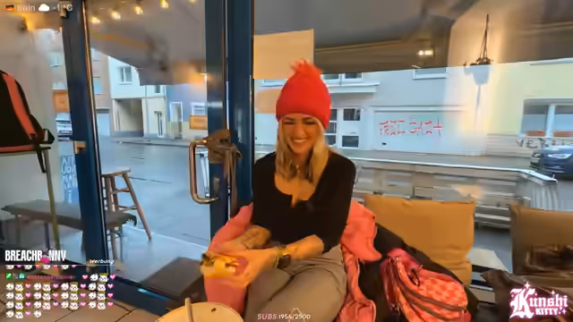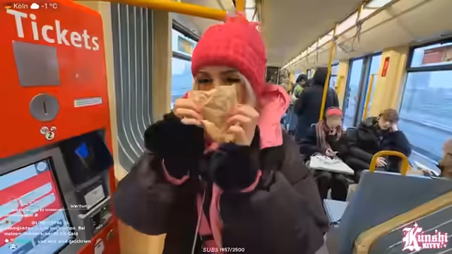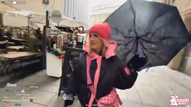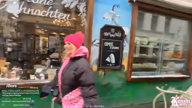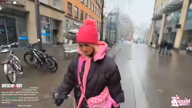 01:43:44Auf dem Weg zum Schlittenkauf ärgert sich die Streamerin über das plötzlich einsetzende, ungemütliche Wetter. Sie beschließt zunächst, einen Schirm aufzuheben, den jemand weggeworfen hat. Ihr Vorhaben, einen neuen Schlitten zu kaufen, gestaltet sich jedoch schwierig. Besonders frustriert ist sie über das fehlende Internet in den ersten Läden, wo sie eigentlich shoppen wollte, was es unmöglich macht, mit den Zuschauer:innen zu interagieren und den Stream normal fortzusetzen.