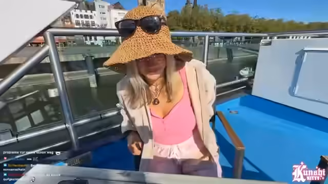 01:31:16Während der Fahrt auf dem Rhein wird ein möglicher Halt in einem anderen Hafen in Betracht gezogen. Es wird darauf hingewiesen, wie leer das Schiff ist, was anfängliche Bedenken hinsichtlich Diebstahls für die Ausrüstung mildert. Dessen ungeachtet plant die Streamerin, für den kurzen Gang zur Toilette eine nette Passantin zu bitten, auf das Material aufzupassen. Die Verzögerung des Streams wird mit rund elf Sekunden angegeben und als moderat eingestuft, ohne größeren Sorgen auszudrücken.