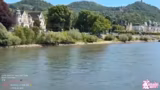 04:05:23Beim Anblick des Berges, der vermutlich der Drachenfels ist, und dem Schloss in der Ferne, ist die Vorfreude groß. Die Kosten für die viereinhalbstündige Tour werden erneut genannt und als fair empfunden. Es wird offen diskutiert, ob das Schloss oder die Burgruine als nächstes Ziel besser geeignet sind. Die Geduld der Streamerin wird auf eine Probe gestellt, als sie nach dem Verlassen des Schiffs auf andere wartet und das Stativ instabil wirkt.