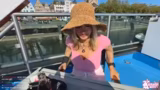 00:21:07Das Schiff beginnt sich zu bewegen und die Streamerin stellt fest, dass sie sich von dem Klopfgeräusch entfernt hat, das sie zuvor gestört hatte. Gemeinsam mit dem Chat beschließt sie, sich an das Heck des Schiffes zu bewegen, wo es kühler ist und eine bessere Aussicht besteht. Hier hat sie nun einen Platz mit Lautsprecher, der aber für den Stream zu laut ist. Nachdem sie versucht hat, den Lautsprecher abzuschalten und umzustellen, bemerkt sie, wie schnell das Schiff fährt und entschließt sich, den Platz zu wechseln, um die Geräusche zu reduzieren und einen baren Blick auf die Landschaft zu haben.
