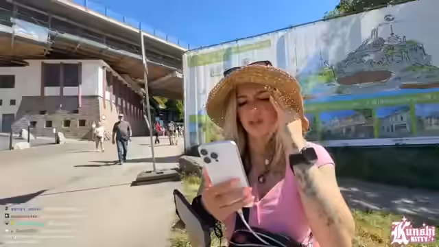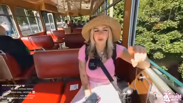 04:25:30Das Schiff legt in Königswinter an und die Streamerin plant, die Zahnradbahn zu nehmen, um den Berg zu erklimmen. Die Suche nach der Bahn gestaltet sich jedoch chaotisch, da die meisten Leute bereits vor ihr abbiegen. Sie verlässt sich auf die Masse und wünscht sich veganes Eis. Beim Souvenirverkauf werden kurze Einkäufe und ein am Stativ befestigter Hut zum Thema. Die Stimmung ist trotz der Geduldsprobe durch die Hitze und den Wind weiterhin gut.
