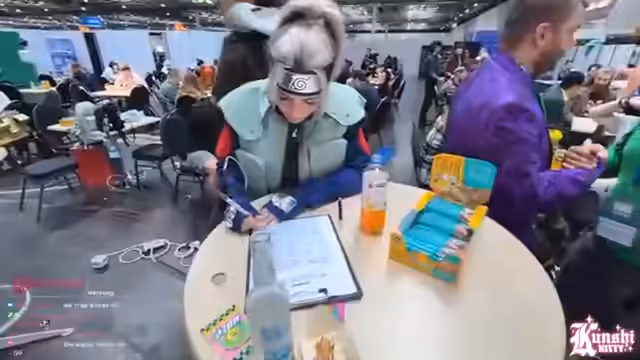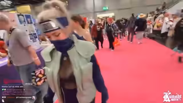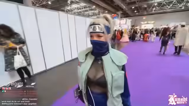 01:38:46Der Fokus des Streamings liegt auf dem Dokomi-Bingo. Die Streamerin sucht gezielt nach anderen Cosplayern und interagiert mit ihnen, um Aufgaben wie das Finden eines Naruto-Cosplays oder das Anfordern einer Quest an einem Stand zu erledigen. Sie gibt an, dass viele ihrer Fans sie im Female-Kakashi-Cosplay nicht sofort erkennen. Parallel dazu gibt es Diskussionen im Chat über Anime-Fortsetzungen wie Boruto und die vermehrte Präsenz von One Piece im Vergleich zu Naruto.