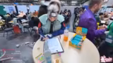 03:38:33Als der Streamer den späteren Nachmittag erreicht, ist er müde und berichtet, dass er bis vier Uhr wach war. Er kritisiert den sozialen Druck, auf Conventions Alkohol zu trinken, und entscheidet, dies zu vermeiden. Gemeinsam mit einem Begleiter namens Max dreht er am Glücksrad und unboxt verschiedene seltene 'Kreatur'-Artikel, die an Ähnlichkeiten zu Pokémon erinnern. Die Zuschauer können darüber abstimmen, ob die Gewinne für wohltätige Zwecke gespendet oder verlost werden sollen.
