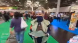 02:23:19Der Streamer nutzt den Livestream, um aktiv auf der Messe nach bestimmten Elementen für sein Bingo zu suchen. Er spricht direkt mit Besuchern, um Fotos zu machen, und erfährt von anderen wiederkehrenden Besuchern der DOKOMI. Er berichtet über erste Erfolge, wie das Finden von Link und einer Jinx-Cosplayerin. Er erwähnt auch den Umstand, dass das Wetter mehr Leute ins Gebäude lockt, und diskutiert die Beliebtheit von Standorten wie dem Schminkbereich.