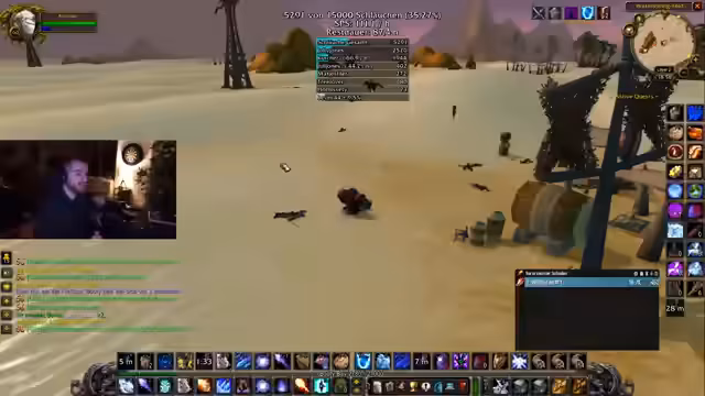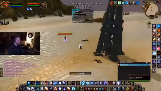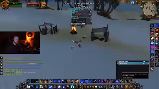 02:04:33Der Stream konzentriert sich intensiv auf das Farmen von Schläuchen in der Wüste, wobei insbesondere die Zusammenarbeit mit einem Spieler namens Agiriskas erwähnt wird. Dieser ist auf Level 48 und soll eigentlich 20 Schläuche farmen, was jedoch auf 40 erhöht werden muss. Es gibt Klagen über die Überfüllung der Server-Layer, was das Farmen erschwert, da in jedem Camp nur maximal ein Mob gefunden wird. Der Streamer beschreibt den Prozess als krankhaft und preist die Effektivität des Farmings, besonders bei den Teufelssauriern, bei denen in anderthalb Stunden drei vollständige Sets zusammengefarmt wurden.
