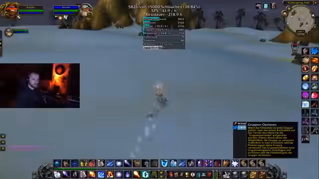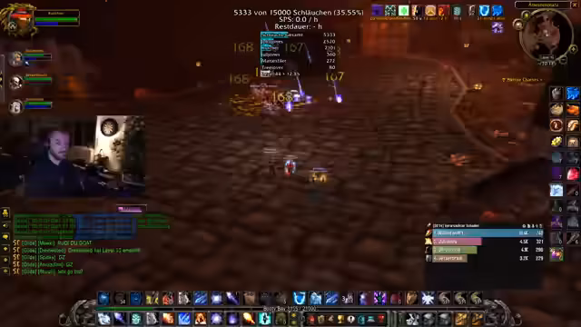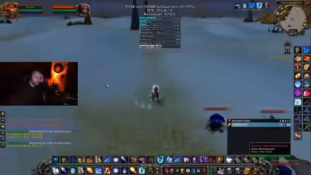 04:13:11Der Streamer berichtet über seine Fortschritte in der Loot-Session in Stratholme Living und prahlt mit einer hohen 'Schlauchquote' von etwa 113 Stück pro Stunde. Gemeinsam mit anderen Spielern wird versucht, den Loot so effizient wie möglich zu sammeln. Es kommt dabei zu Diskussionen über den Aufbau der Gruppe und die Verteilung von Loot, wobei ein 'Greed'-Modus für Gegenstände wie ein Schwert beschlossen wird.