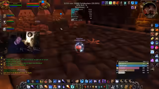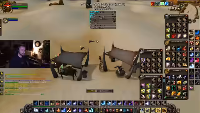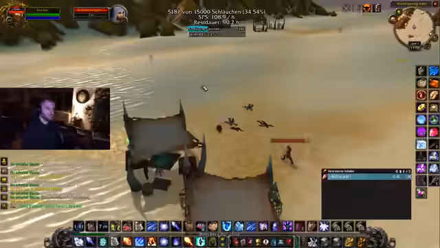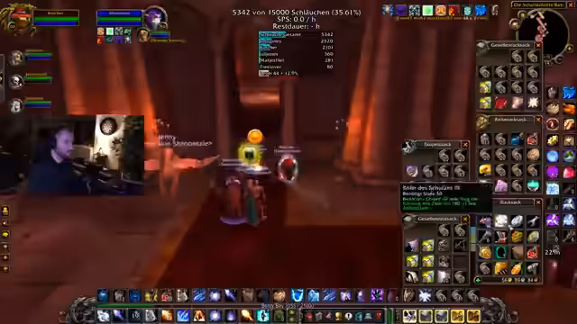 08:54:15Der Fokus liegt auf dem Farmen von 'Schläuchen' in World of Warcraft: The Burning Crusade. Die Streamerin und ihre Mitspieler arbeiten systematisch an der Steigerung ihrer Quests und Items. Es werden Drops wie Rüstung und Waffen besprochen, wobei Seltenheit und Nützlichkeit im Vordergrund stehen. Ein problematisches Inventarmanagement wird thematisiert, bei dem Kevin, ein Kamerad, die Items manuell sortieren muss, was als 'painful' beschrieben wird.