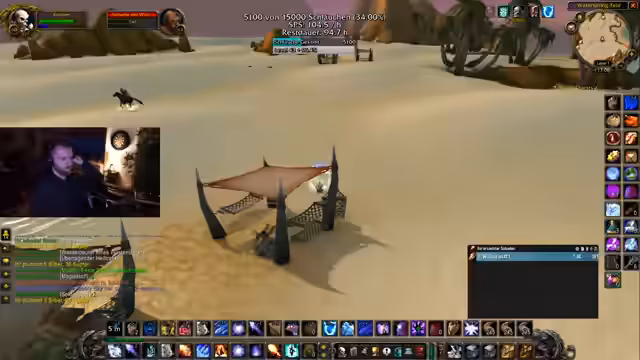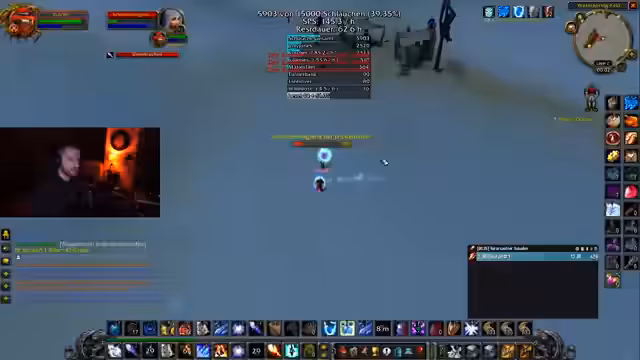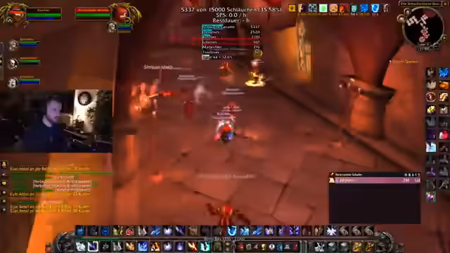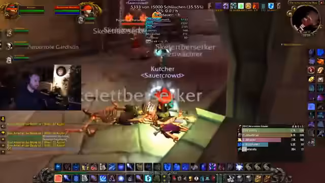 05:59:56Der Fokus liegt auf dem finalen Bosskampf gegen den Archivar Gelfort, der gefährliche Fähigkeiten wie Sleep, Domination und AoE-Schaden hat. Die Taktik verlangt, dass kontrollierte Gegner nicht angegriffen, sondern mit Sheep oder Stuns neutralisiert werden. Der Streamer bereitet sich mit Cooldowns und besonderen Taunts auf die Verwandlung des Bosses vor. In der Interimsphase werden alle Spieler angehalten, ruhig zu bleiben und den Tank zu unterstützen, bevor der Boss in seine finale Form übergeht.