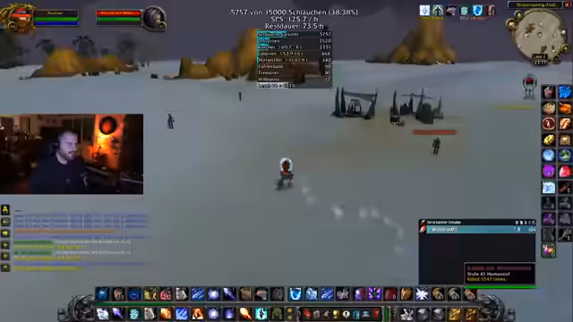01:24:25Die Session konzentriert sich darauf, das Ziel von 5.100 Schläuchen zu erreichen. Nachdem die Probleme mit der Weak Aura behoben sind, wird das Farming fortgesetzt. Der Streamer stellt jedoch fest, dass die Gebiete weiterhin überfarmt sind und die Effizität der Schlauch-Jagd leidet. Während des Farmings kommt es zu unvorhergesehenen Ereignissen wie Interaktionen mit anderen Spielern, die als 'Griefing' interpretiert werden. Ein Spieler versucht, mit Makros andere Spieler zu provozieren, was zu humorvollen Reaktionen im Chat führt. Der Streamer beharrt darauf, trotz der Schwierigkeiten weiterzumachen und betont, dass selbst kleine Erfolge zählen.