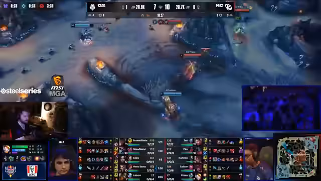 05:25:27In einem sehr actionreichen Spiel, als es bei circa 34 Kills stand, setzte sich NNO gegen G2 durch. Besonders hervorzuheben sind die Leistungen von Hans mit 20 Kills und Carrier, der laut Kommentartruppe einen 'eigenen Skin' spielt. G2s Goldvorsprung wurde als nicht entscheidend angesehen, da die Teamdynamik und einzelne Aktionen von NNO den Ausschlag gaben. Hans war laut Kommentar fast 'unkillable' und trug maßgeblich zum Sieg bei. Das Match wird als 'Acker-Match' und 'verrückt' beschrieben, aufgrund der vielen Todesfälle und den intensiven Teamkämpfen.