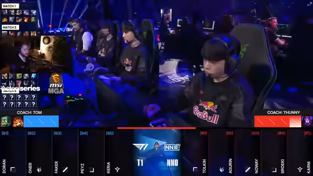 06:38:37Kani setzte seine beeindruckende Leistung fort und landete mehrere erfolgreiche Hooks. Trotz des Goldunterschieds, der in T1s Favoritenschaft resultierte, schaffte es NNO, einige Male zurück ins Spiel zu kommen und Druck aufzubauen. Doch T1, insbesondere Toonie mit seinem Briar-Pick, entschied das Spiel mit einem letzten, entscheidenden Teamfight, der von der Menge gefeiert wurde. Der Coach Tooni wurde als entscheidender Faktor für den Sieg von T1 gelobt, der eine 'grausame' und effektive Performance ablieferte.