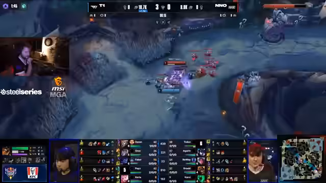 06:21:39Das Spiel zwischen NNO und T1 begann mit einem starken Start von NNO. Kani spielte einen beeindruckenden Brand und erzielte früh Kills. Die Top-Lane mit NoWay gegen Doran war ebenfalls für NNO positiv, während der Jungler Tolki zunächst Schwierigkeiten hatte. Kani und Bröki dominierten die Bot-Lane gegen Pace. Das Spiel entwickelte sich zu einem harten Kampf, bei dem NNO in der ersten Hälfte führte, jedoch durch einen Fehler von NoWay ein Tor verlor und die Führung an T1 abgeben musste.