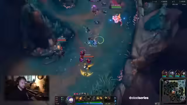 01:55:18Ein entscheidender Fight endet mit dem Tod mehrerer Teammitglieder und dem Verlust des Drakes. Trotz guter Ausgangsposition und Überzahl wird der Fight verloren, da der Gegner einen geschlossenen Front-to-Back-Engage durchführen kann. Der Gegner nutzt die Situation aus, um den Baron Nashor zu nehmen, was das Spiel weiter zu ihren Gunsten verschiebt und die Chancen auf einen Sieg schwinden lässt.