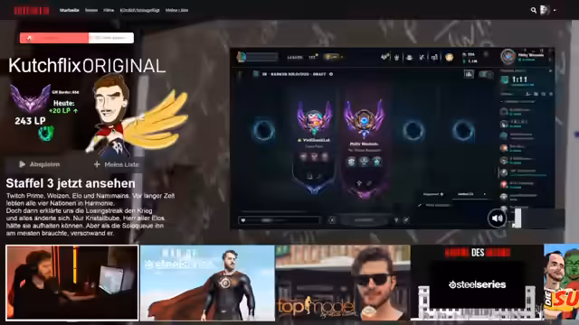 00:00:38Der Streamer kämpft zu Beginn mit technischen Schwierigkeiten, da die Kamera buggy ist und erst nach dem ersten Spiel repariert werden kann. Trotzdem startet das Spiel und es wird über die Teamzusammensetzung und Strategien gesprochen. Es wird erwähnt, dass in einem vorherigen Prime League Spiel teilgenommen wurde, bei dem der zweithöchste Schaden verursacht wurde. Während des Spiels gibt es kleinere Fehler und Diskussionen über Spielzüge, wobei der Fokus auf Teamarbeit und dem Ausnutzen von Gegnerfehlern liegt. Technische Probleme werden weiterhin thematisiert, da die Kamera zeitweise nicht erkannt wird und ein Neustart des PCs in Erwägung gezogen wird. Es folgen Diskussionen über Spielstrategien und die Notwendigkeit, die Kamera während des Spiels zu reparieren, um die Übersicht zu behalten. Die anfänglichen Schwierigkeiten mit der Kamera scheinen den Spielverlauf jedoch nicht wesentlich zu beeinträchtigen.