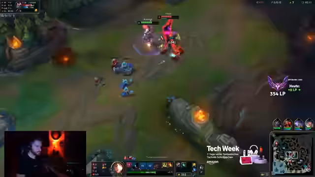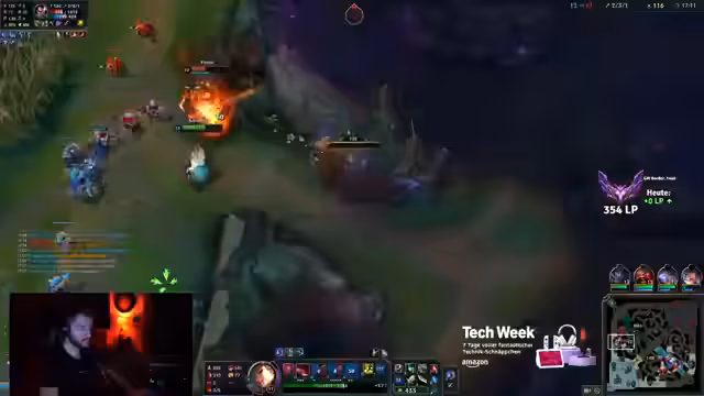 00:06:08Während des Spiels kämpft der Streamer mit mangelndem Impact und wenig Schaden auf Katharina. Er macht mehrere Fehler, darunter einen frühen Recall und eine ineffektive Positionierung. Der Streamer zeigt Frustration über seine Leistung und macht sich selbst Vorwürfe, besonders wenn er Todesfälle erleidet, die vermeidbar gewesen wären. Er diskutiert mit dem Chat über mögliche Verbesserungen und alternative Strategien für den Champion.