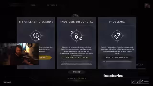 02:25:08Nach dem anstrengenden Spiel bereitet sich der Streamer auf eine hoffentlich angenehme Zeit mit Kani und Tolkien bei Archeron vor. Er nimmt einige Einstellungen vor und bezeichnet das vorherige Spiel als Krampf. Er fügt Hashtags für Werbung und den Archeron Playtest hinzu und packt seinen Link dazu, um die Zuschauer zum Supporten einzuladen. Er fragt sich, ob Kani und Tolkien bereits im Discord sind und was es in dem Spiel zu tun gibt, das sie gleich zusammen entdecken werden. Es wird als Battle Royale, 3 gegen 3 Arena und BVP-Game beschrieben, wobei ein Vergleich schwierig ist. Der Streamer stellt fest, dass das Spiel sehr laut bei ihm ist und fragt, ob die anderen es auch hören. Er wechselt zu Kanyens Stream und klärt die Discord-Situation. Es werden viele Gruppen aufgemacht und der Streamer ist verwirrt. Er stellt fest, dass Kathleen auch etwas gesagt hatte. Der Streamer ist pumped und findet, dass das Spiel cool aussieht. Er hat vergessen, dem Discord-Server beizutreten und sein Arkyron-Konto zu verknüpfen, was auch Tolkien vergessen hat. Sie fühlen sich wie schlechte Influencer, aber sind immerhin besser als 80% der anderen Influencer. Der Streamer versucht, sein Discord mit Archeron zu verlinken und fragt, wo man das macht. Er findet die Option unten rechts und verbindet sein Konto erfolgreich. Er stellt fest, dass es noch ein Streamtogether mit den anderen beiden gibt und verlässt es schnell. Er fragt nach dem Fortschritt der Win-Challenge und erfährt, dass sie drei Dota-Wins brauchen. Der Streamer tritt dem Archi-Run Discord bei und verbindet sein Konto mit Bonfire. Er liest die NDA aufmerksam durch und stellt fest, dass sie nur verknüpfen und dem Discord joinen müssen. Tolkien hat den Call nicht angenommen und zockt alleine Pokémon weiter. Er ist offline in Archeron, aber der Streamer schickt ihm seinen Freundescode. Der Streamer deaktiviert den Voice-Chat, da er sich dreifach hört. Er nimmt Tolkien an und stellt fest, dass er abgehoben ist. Der Streamer fragt, wie man Leute annimmt und Tolkien editiert ihn.
