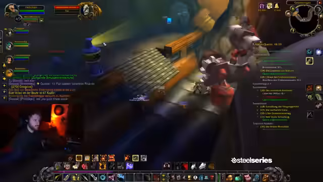 06:09:23Der Streamer und sein Team befinden sich in Gnomeregan, einer Instanz, die als besonders herausfordernd beschrieben wird. Es wird über die Gefahren von Minen gesprochen, die nach 10 Sekunden scharf werden und erheblichen Schaden verursachen können. Die Strategie des Teams, sich an Wänden festzuhalten, um ungewollte Pulle zu vermeiden, wird diskutiert. Besondere Aufmerksamkeit gilt einem Schurken im Team, der mehrfach nur knapp dem Tod entgeht, was die Intensität der Situation unterstreicht. Trotz der Schwierigkeiten wird die Instanz als atmosphärisch empfunden, und es wird der Wunsch geäußert, den Soundtrack von Baron Rivendare zu hören. Die Gruppe bewältigt die Herausforderungen, und es wird betont, dass die Instanz, obwohl intensiv, machbar ist.