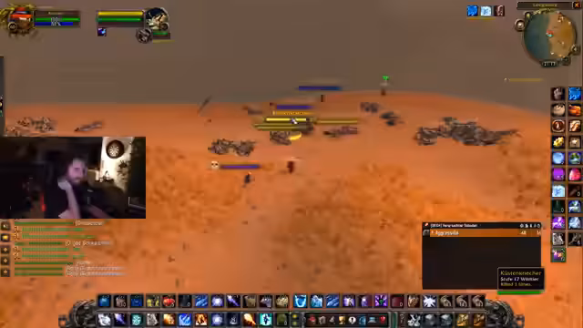 02:14:52Zentraler Gegenstand des Streams ist das Farmen von Schläuchen des Wüstenläufers in Tanaris. Die Ziele sind klar definiert: es werden 15.000 Schläuche benötigt, um den Charakter Kevin von Level 40 auf 50 zu bringen, was einen enormen Aufwand darstellt. Der Streamer erläutert die zugrundeliegende Quest, bei der fünf Schläuche 380 XP bringen, und betont, dass die XP im Falle eines Scheiterns nicht verloren geht. Ein spezieller Zähler im Streamfenster soll den Fortgang sichtbar machen und für einen potenziellen Clip genutzt werden.
