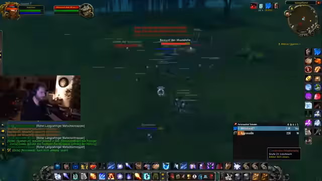 09:02:41Um Kevin effektiv leveln zu können, startet die Gruppe eine systematische Farmaktion. Sie konzentrieren sich darauf, sogenannte 'Schläuche', also Questgegenstände, die Erfahrungspunkte gewähren, in großer Menge zu farmen. Das Ziel ist es, 15.000 Schläuche zu sammeln, um Kevin von Level 40 direkt auf 50 zu bringen. Um dies zu organisieren, wird ein Weak-Aura-Add-on installiert, um die gesammelten Schläuche zu zählen und die Farmaktion für die Zuschauer transparent zu machen.