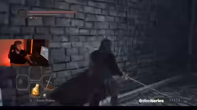 00:01:15Nach dem Start des Streams äußert der Streamer Begeisterung für Dark Souls 2 und betritt die Spielwelt. Bereits zu Beginn treten technische Probleme mit der Soundausgabe auf. Er identifiziert sich als Loser der Stufe 38 und stellt fest, dass er den weißen Rand der Seelenleiste noch entfernen muss. Trotz anfänglicher Begeisterung bleibt die Stimmung von Pannen geprägt, etwa als er auf einen Schaden reagiert und nach einer Missverständlichen Situation fragt, ob er einen Boss machen oder erst etwas anderes tun soll.