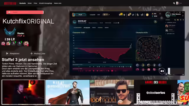 01:09:16Nach einer Reihe von Verlusten wird über die Spielweise und Champion-Auswahl diskutiert. Der Protagonist reflektiert über ein verlorenes Spiel, in dem ein Blitzcrank getrollt hat, und betont, wie sehr er seine Lane gewonnen hat. Er guckt sich die Match History an. Trotzdem wird ein Neustart versucht, um wieder auf die Siegerstraße zurückzukehren. Es wird auch überlegt, Treasure Hunter auszuprobieren. Der Streamer spielt mit Coven Syndra und überlegt, ob Dorans Schild eine gute Wahl für die Lane wäre. Der Protagonist äußert den Wunsch nach einem Gang und kritisiert seine eigene Treffsicherheit mit den Fähigkeiten. Trotzdem könnte es schlechter laufen.