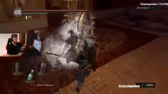 03:23:32Der Streamer ist zutiefst frustriert über einen dummen Tod in Dark Souls. Er gibt an, den Fehler selbst gemacht zu haben, indem er nicht weit genug nachgelaufen ist, was zu einem unglücklichen Sturz führte. Dieser Tod war besonders ärgerlich, da er bei einer recht hohen Punktzahl von 143 passiert ist und der Streamer denkt, dass das Durchspielen ohne Probleme möglich gewesen wäre. Er sieht sich den Clip an, um sich den Fehler nochmal anzusehen, und bezeichnet die Situation als 'Schande'.