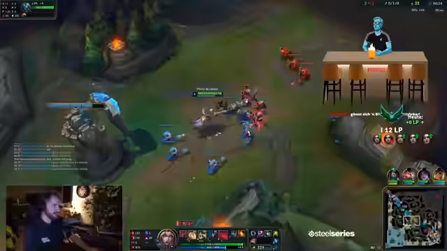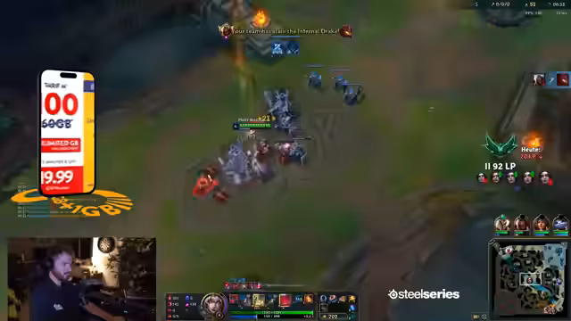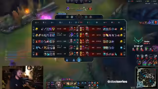 04:08:34Das Spiel wendet sich, als der Streamer einen fehlgeschlagenen Versuch unternimmt, einen Gegner mit seinem Ultimate zu überraschen. Eine falsche Entscheidung führt dazu, dass sein Team im Drachenkampf unterliegt und massiv an Gold verliert, was eine 'vernaschung' zur Folge hat. Das Momentum ist nun beim Gegner, was den Streamer frustriert, da er trotz persönlichem Erfolg (meisten Schaden im Spiel) die Spiele nicht für sich entscheiden kann.