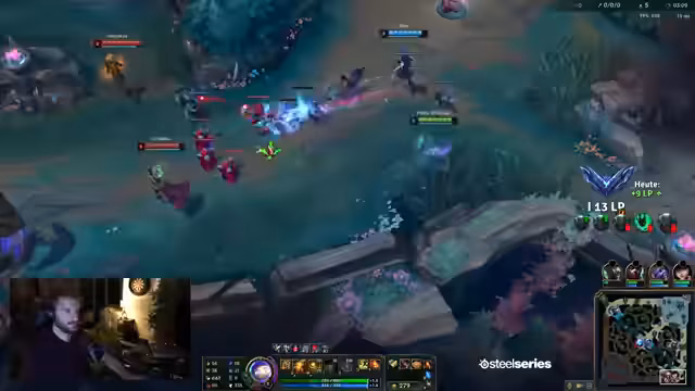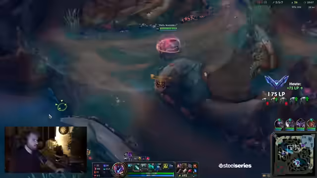 00:00:00Der Stream beginnt mit dem Countdown zum Minion-Spawn auf Summoner's Rift. Der Streamer startet aggressiv im Bot-Lane mit einem frühen Hook, gefolgt von einem erfolgreichen Flash, was ihm einen Kill beschert. In den ersten Minuten konzentriert er sich auf das Farming und das Erreichen von Level 3, um im Spiel zu bleiben und Druck aufzubauen. Ein earlyer Drake wird erwähnt, der noch geholt werden könnte. Währenddessen kommuniziert er intensiv mit seinem Team über Taktiken und Vision, insbesondere bei einem potentialen Kampf nahe der Wächter.