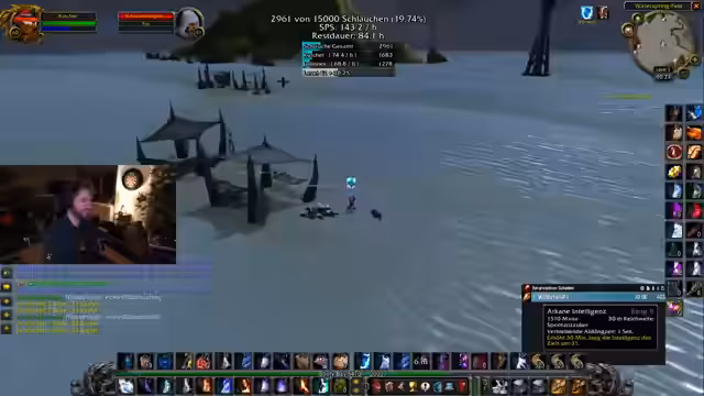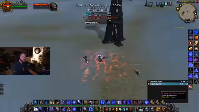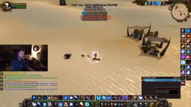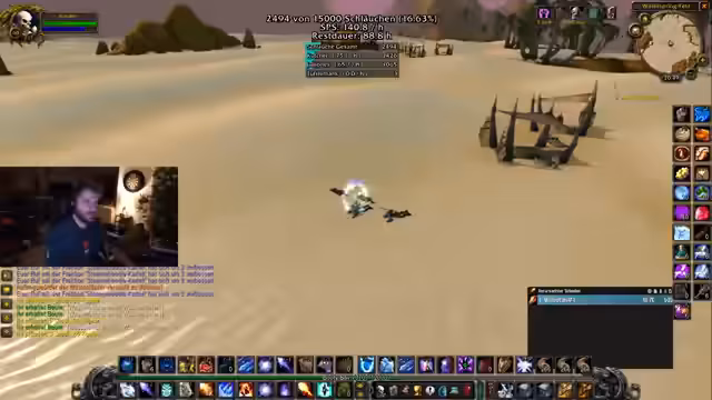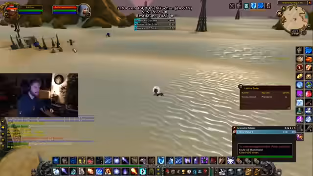 00:21:34Die Aktion verlagert sich auf das gezielte Farmen von Gegnern mit Flächenangriffen (AOE). Dabei wird ein strategischer Spot in denöstlichen Pestländern ins Visier genommen. Streamer und Zuschauer analysieren den Effektivität von verschiedenen Fähigkeiten, insbesondere beim Magier, und diskutieren Skillpunkte. Ein anspruchsvoller Moment tritt ein, als der Level 59er Magier Juli eine tödliche Fehler bei einem Pull macht und fast stirbt, was zu einem dramatisischen, aber erfolgreichen Rettungsmanöver führt.