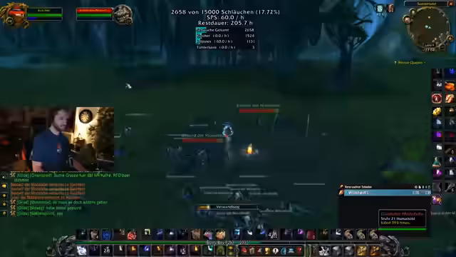 01:38:55Ein zentraler Aspekt des Streams ist die direkte und humorvolle Interaktion mit der Community. Der Streamer beantwortet Chat-Nachrichten, greitt Witzigkeiten auf und integriert Zuschaueraktivitäten in das Gameplay, wie die Nutzung von Makros. Die Zuschauer werden gezielt angesprochen, um an Entscheidungen beteiligt zu werden oder um über spezifische Gameplay-Details wie Drops und Zufallsereignisse diskutieren. Das 'Schlauchen'-Thema dient dabei als Running Gag, um die Gemeinschaft zu vereinen.
