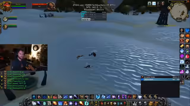 01:33:07Ein zentrales Gameplay-Thema ist das gemeinsame Farmen von Erfahrungspunkten (XP) und sogenannten Schläuchen (Objekten oder Mobs) für die Charakterentwicklung. Der Streamer und seine Ko-Spieler arbeiten daran, ihre Level zu steigern, insbesondere bei Kevin, derEquipment benötigt. Es finden strategische Diskussionen über Pull-Größen und die Wahl der effizientesten Farming-Orte statt. Das Ziel ist es, die maximale Menge an XP und Schläuchen pro Zeiteinheit zu erzielen, wobei auch alternative Standorte wie Trolldorf im Gespräch sind.