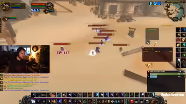 01:51:25Der Streamer bietet der Gilde sein Farming-Angebot an, indem er große Mengen an Seidenstoff und Magiestoff sammelt und zur Verfügung stellt, was eine profitable Symbiose darstellt. Ein Spieler, Ronny, bittet um Coaching für seine Krieger-Tank-Rolle. Obwohl der Krieger als eine der nervigsten Klassen fürs Leveln gilt, erhält er den Rat, mit einem Heiler zusammen zu spielen. Für den bevorstehenden Dungeon in Schattental wird auf eine Healer-Spezialisierung umgestellt.