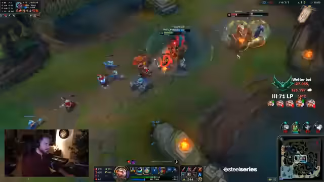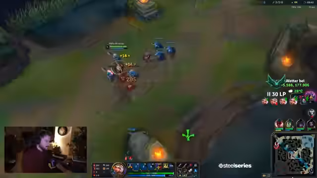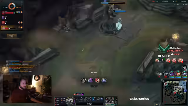 00:00:43Der Stream beginnt mit einer lockeren Begrüßung der Community und der Reflexion über die vergangene Spielzeit, wobei sich der Streamer kaum an die letzten Matches erinnern kann. Nach einem kurzen Smalltalk über die Jobzufriedenheit und die bevorstehende Gamescom konzentriert er sich auf das aktuelle Spiel. Er plant, direkt ins Gescheinen zu starten und hofft auf einen Sieg, wobei er sich auf die Rolle von Qiyana konzentriert und seine Fähigkeiten im Detail analysiert. Das Ziel ist ein Level-3-Kill, doch die Wave steht nicht optimal dafür.