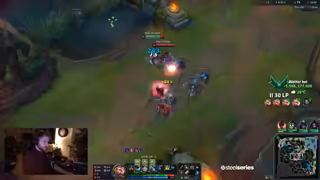 04:25:02Der Streamer analysiert ein frühes Matchup gegen Elise und Katharina, in dem er den Schaden der Gegner als extrem hoch einschätzt. Er diskutiert strategische Entscheidungen, etwa das Warten auf Level 8 für sichere Engagements oder Pokes, bemerkt aber, dass Katharina keine Ultimate hat. Die Frustration steigt, als er feststellt, dass die gegnerischen Supports die Map dominieren und Kills sammeln, während er sich auf CS-Konzentration fokussiert. Er beklagt den fehlenden Damage und schlechte Ultimates, die zu einer Ace-Situation führen, und reflektiert über die Schwierigkeiten in diesem Spielabschnitt.