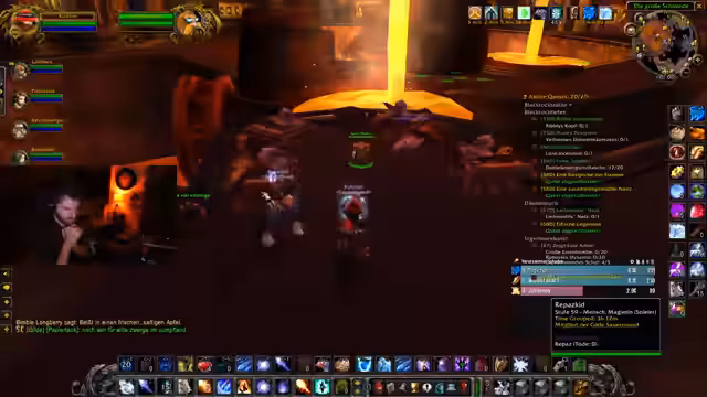 00:01:18Der Streamer plant einen Dungeon-Run um 19:30 Uhr. Nach anfänglicher Überlegung für einen Full-BRD-One entscheidet man sich für die untere Blackrockspitze (LBRD) mit einer Gruppe von vier Spielern, wobei noch ein fünfter gesucht wird. Die Dauer eines solchen Fullruns wird auf etwa zwei Stunden geschätzt. Die pre-oni Quest wird für heute ausgelassen, da sie zu lange dauern würde.