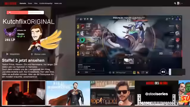 00:00:44Der Stream startet mit dem Titel 'hallo hier bitte einschalten sonst muss ich eure erziehungsberechtigten kontaktieren'. Der Streamer begrüßt sein Publikum und bittet um Einschaltung, um Ärger zu vermeiden. Er kündigt einen League of Legends Abend an und erwähnt, dass er noch Elden Ring herunterladen muss. Es folgen einige technische Anpassungen an der Kamera und einige oberflächliche Kommentare zum eigenen Spielstil, bevor er ins Match startet.